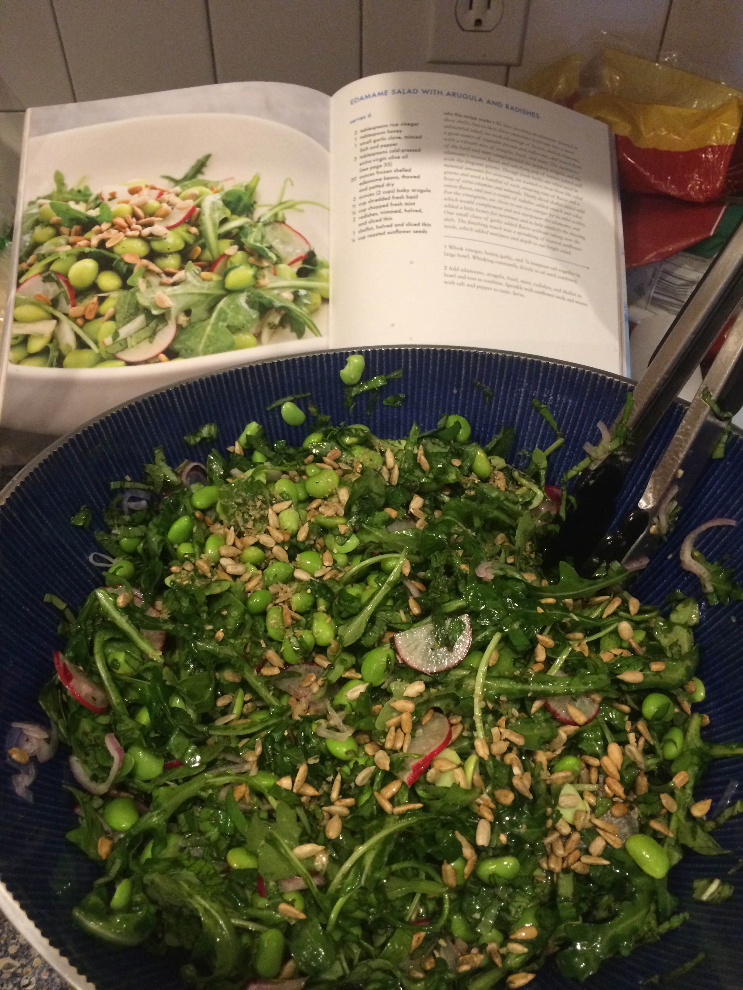 This one required no actual cooking, just thawing the edamame, chopping/slicing things, and mixing them together. The flavors were lovely and it was a nice, simple dish after the previous night’s endeavor. Kids weren’t huge fans of it but did better with it than I expected. It was hard to get everything evenly distributed throughout the salad but that’s probably because I doubled the recipe.