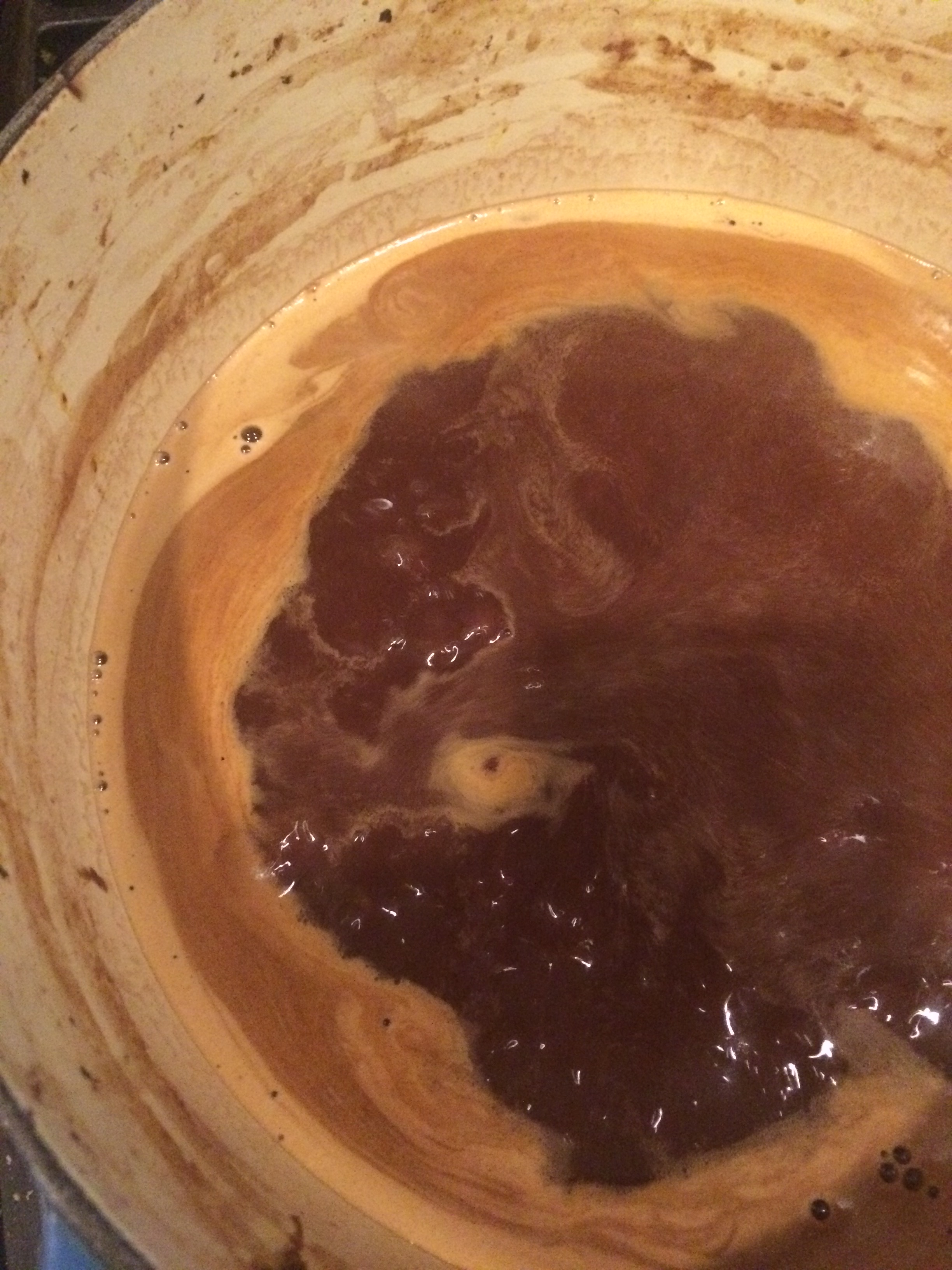Thickening the sauce with pretty whirlpools.