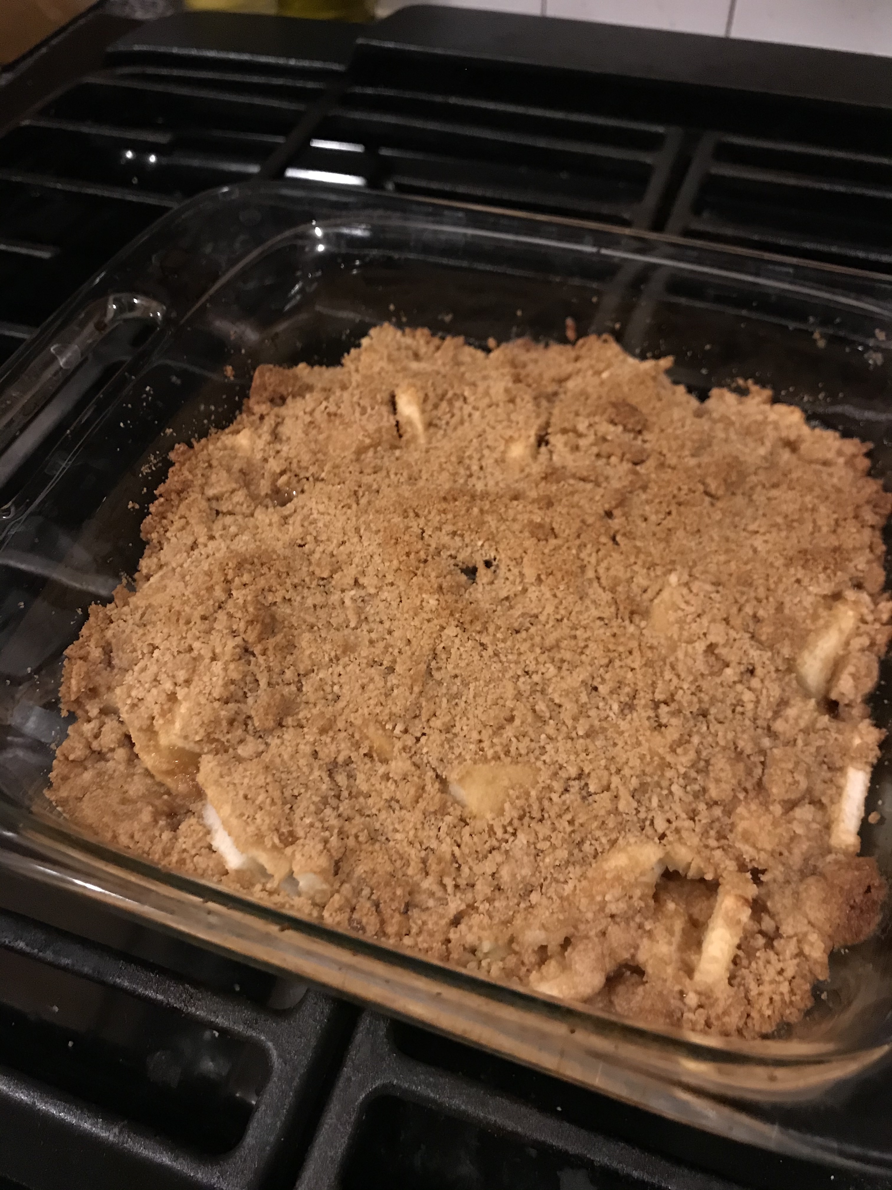 This is the recipe we always had growing up. I remember being really excited about having apple crisp at some point when it was made outside of my home and then being appalled that there were oats in it. I was not a fan. I learned never to order apple crisp at a restaurant and to be hesitant when offered homemade apple crisp. My sister and husband do not share my disdain for oat-containing apple crisp, but they do share my appreciation for this recipe. Since this one of few recipes I make that I did not take directly from some published source, I thought I’d share it.