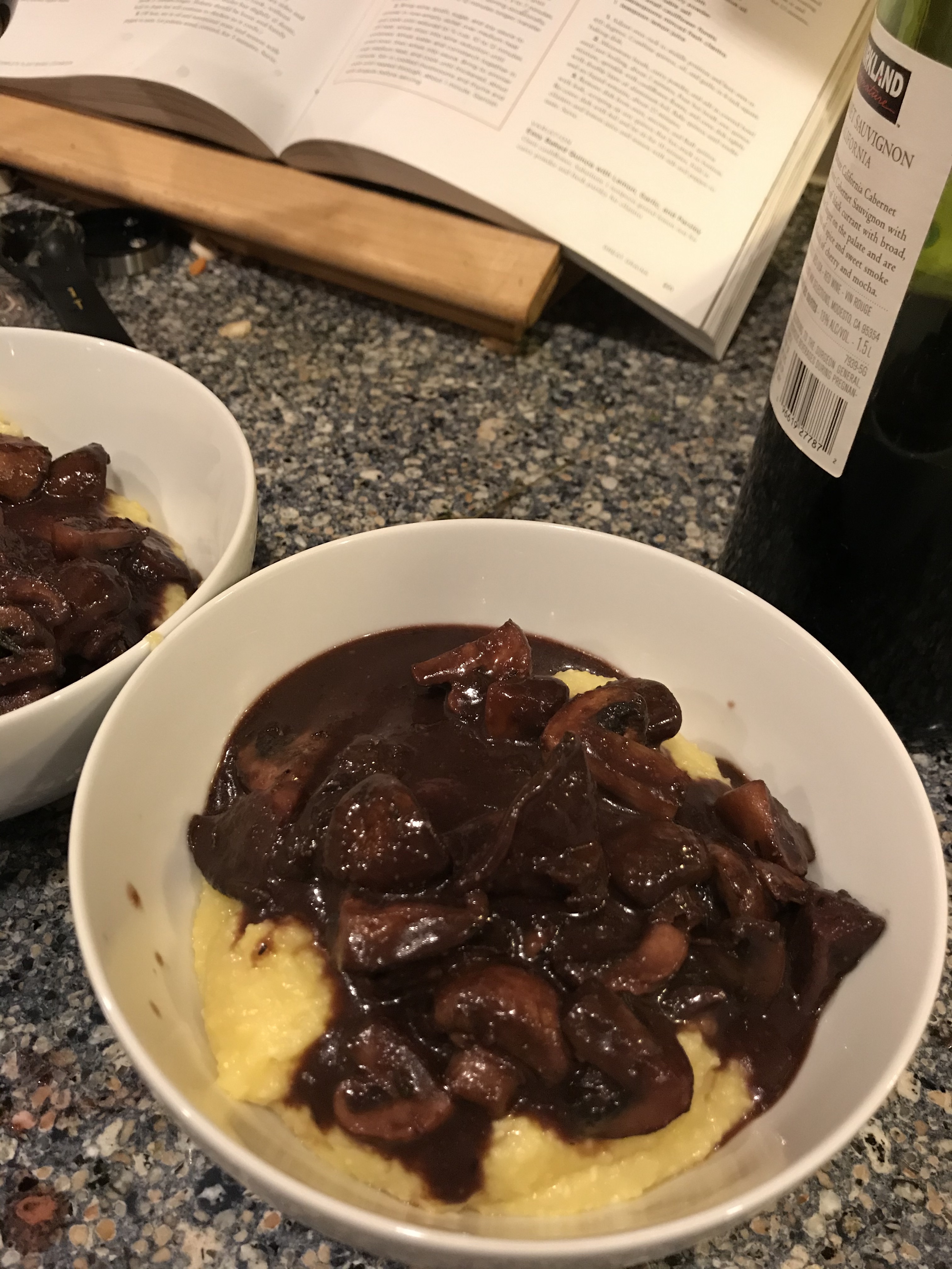 This timeline for this one is probably quite a bit off – not only did I make vegetable broth base after getting started (see yesterday’s post for reference to running out of vegetable broth), but my sister was working overtime so I was stalling to make sure she could eat when it was ready. It was about an hour of cook time, plus maybe 15 minutes or so of prepping the mushrooms, though I always have to spend more time simmering things than the recipe calls for, so it probably would have taken less time had I just simmered vigorously.