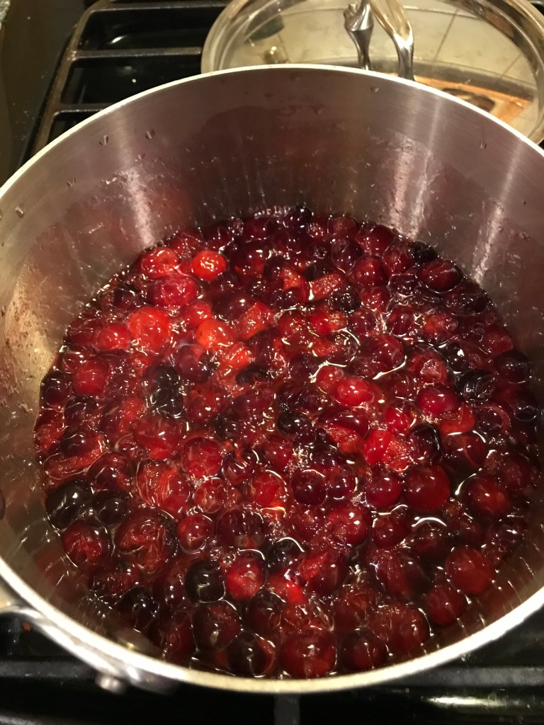 I mentioned cookies, though, so I have to share about those. Sean is super into having a bunch of Christmas cookies (thanks, Aunt Diane) and has especially gotten into The Perfect Cookie over the last few years, so we have four cookies in the plan for this week. Actually, you know what, I’m going to give today’s cookies their own post. But I also have a cranberry shrub draining/cooling right now, so here’s a picture of that cooking, since it’s not complex enough to get its own post: