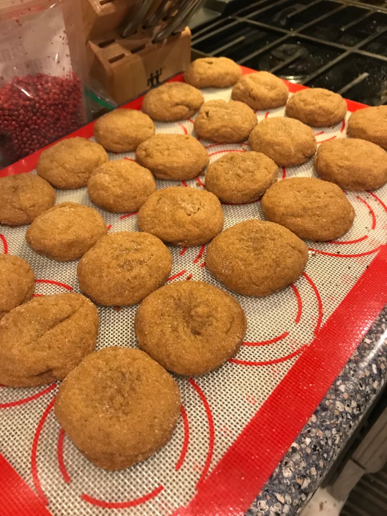 We’ve made the molasses spice cookies before (they’re our one repeat cookie for the year) and they didn’t quite turn out right this time. Sean thinks we overworked them, which is a plausible explanation, so they seem like they’ll be a bit tough and Sean is already planning on making another batch. They’re easy enough that that’s not an absurd idea.