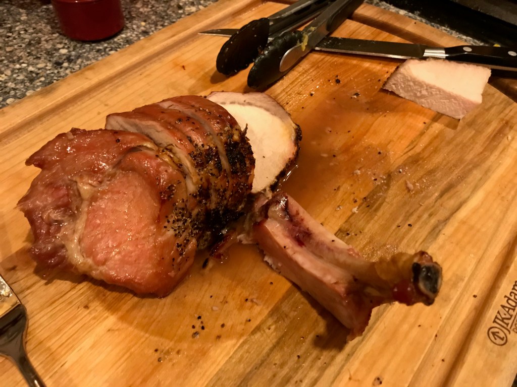 I found these roasts at Costco, thought they looked interesting, and texted a picture to Sean. Before I had made it through a few more aisles, we had decided that I should go back and pick some up because he wanted to cut some pork chops and also make a roast. I’m so glad I did, because these were the juiciest ribs I’ve ever had and the flavor on both the loin and the ribs was incredible. I’ve decided simple pork rubs are my favorite, because this and rosticciana are both super amazing. This recipe took time and Sean definitely took the lead on it, but it seemed pretty easy if you have the time.